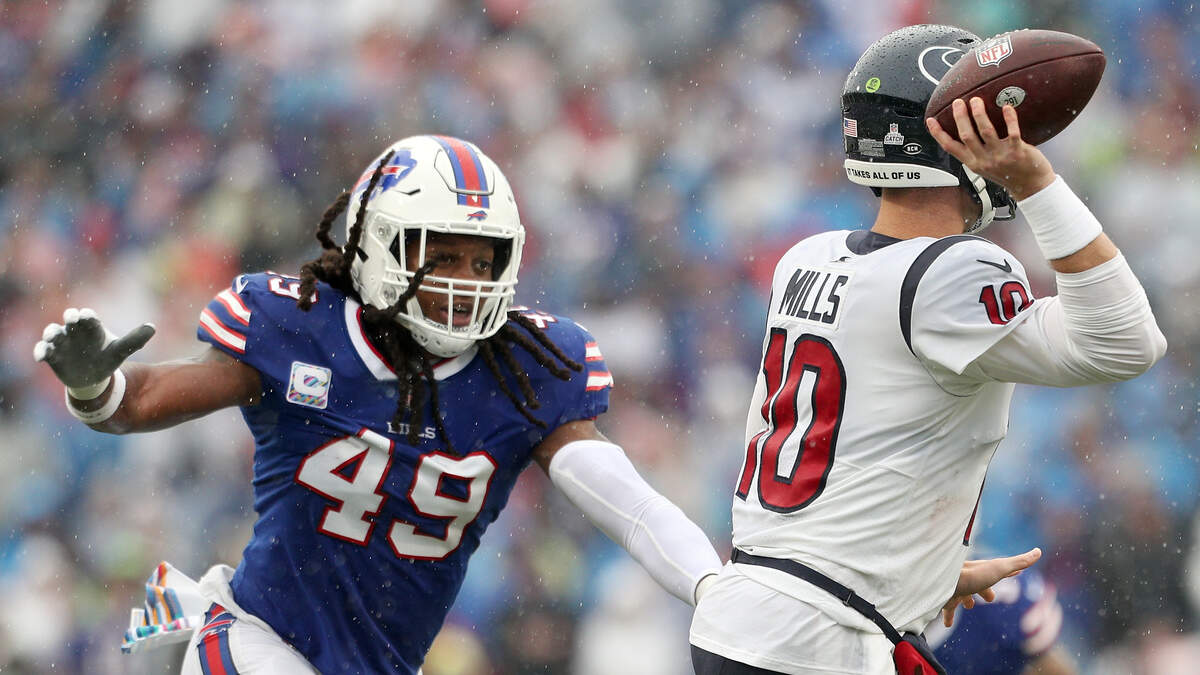 In the first quarter, Culley was aggressive and went for it on 4th-and-3 at the Bills’ 6-yard line. Mills’ pass intended for running back David Johnson in the flat was deflected by defensive end Jerry Hughes.