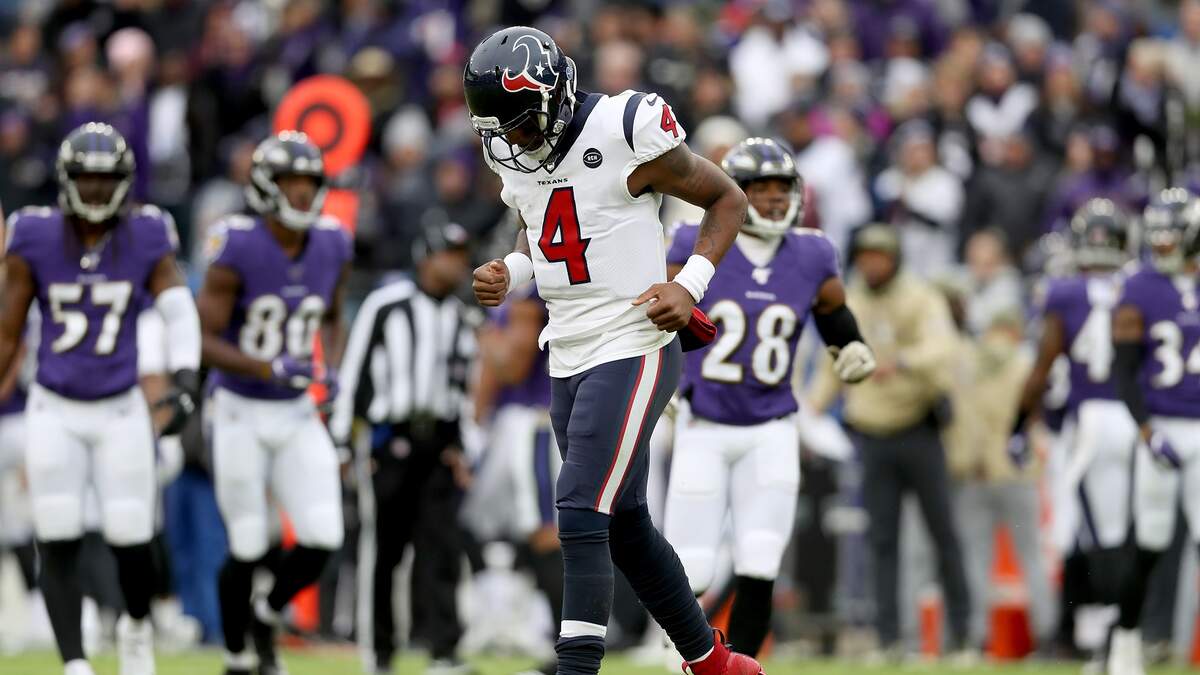 In a battle of MVP-caliber quarterbacks in Baltimore on Sunday, Lamar Jackson showed up, while Deshaun Watson didn't, and the Ravens routed the Texans, 41-7. The Texans need to regroup on a short week for a battle with the Colts on Thursday night.