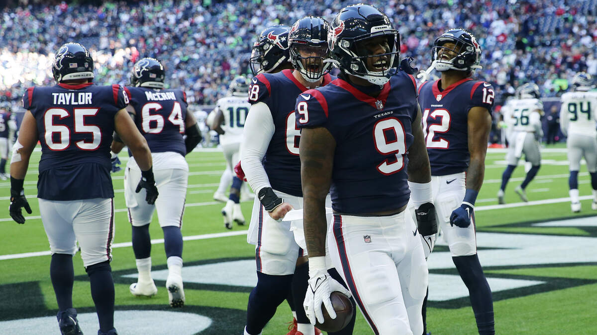 Brevin Jordan broke free on a crossing pattern. The tight end was left completely uncovered on a play-action pass as Texans rookie quarterback Davis Mills scrambled to draw the attention of the Seattle Seahawks’ defense.