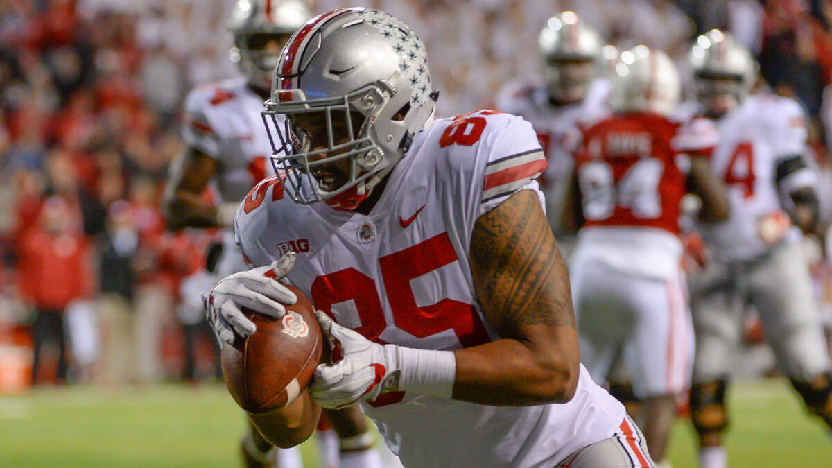 He has one career reception for two yards.The California native had 52 receptions, 573 receiving yards and seven touchdowns in his final two seasons for the Buckeyes.